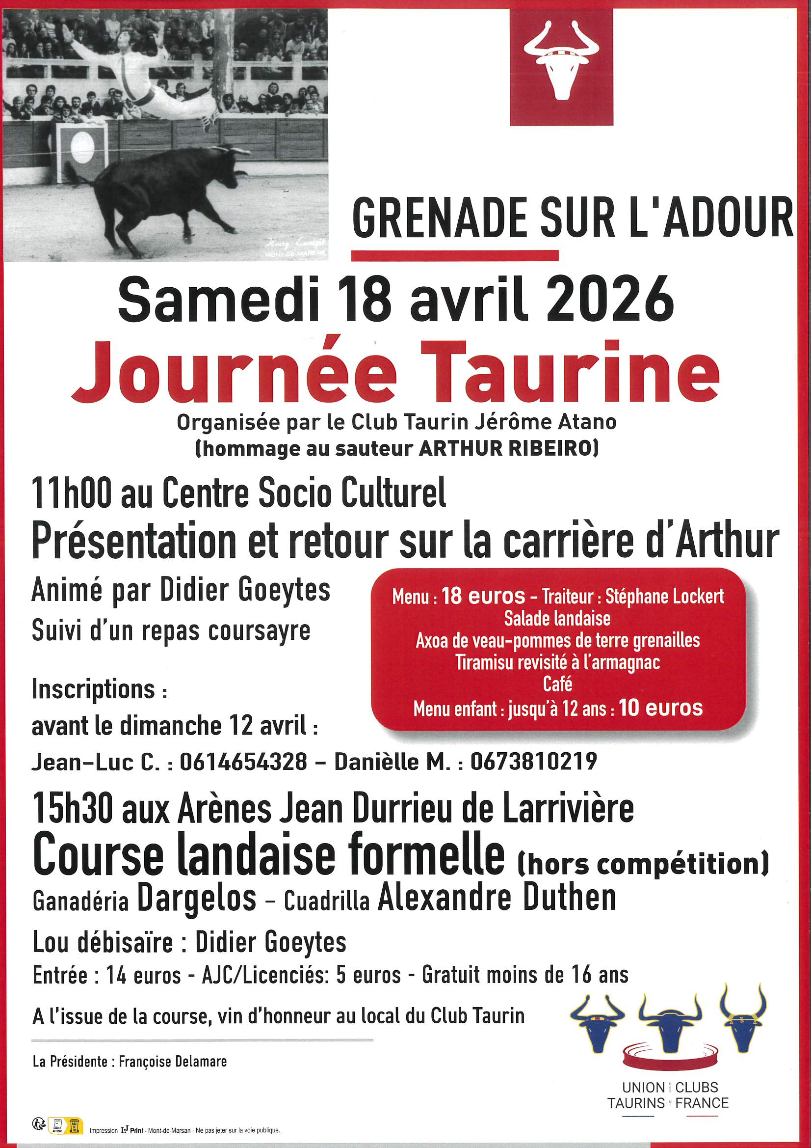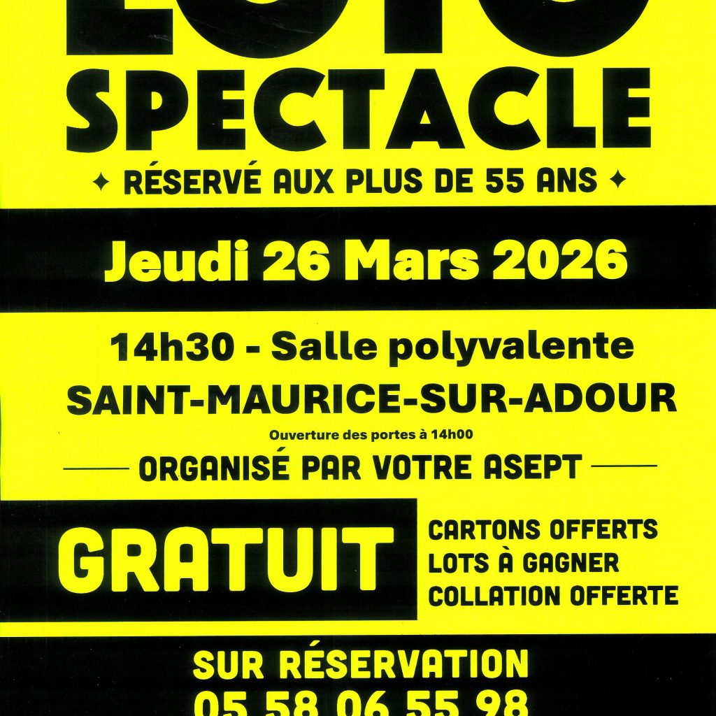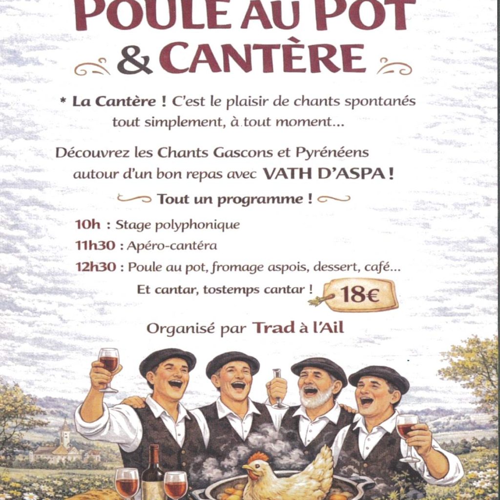 Inscriptions à la mairie avant le 20/03 dernier délai ( fermé le mercredi ) : 05 58 44 06 68 – paiement à l’inscription. 20€ adulte et enfant -12 ans 12€